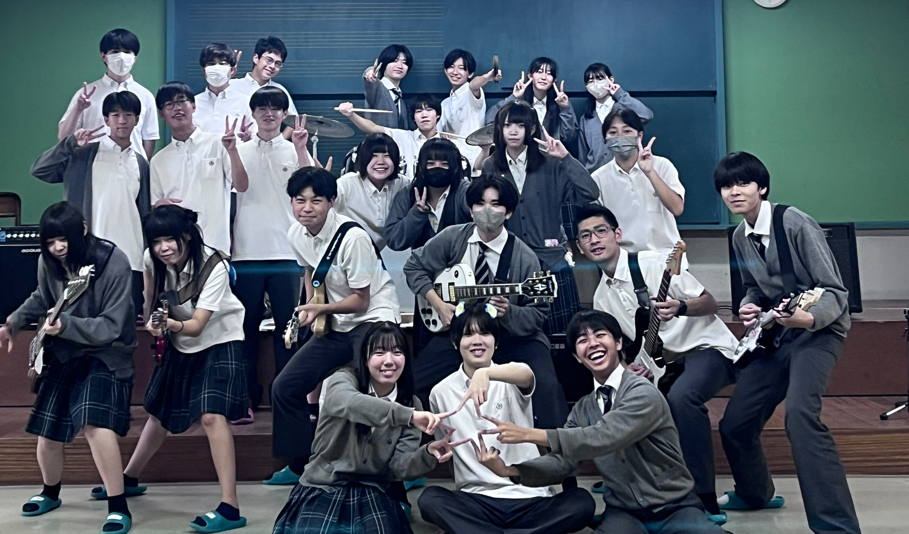 自分たちでバンドを組んで、自分たちで練習をしています。目標は文化祭などで、人前で演奏ができることです。